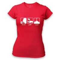 The Lady's T-shirt is slim-fitted which means sizes run small. The sides are slightly contoured and the sleeves are shorter than the men's cut.
